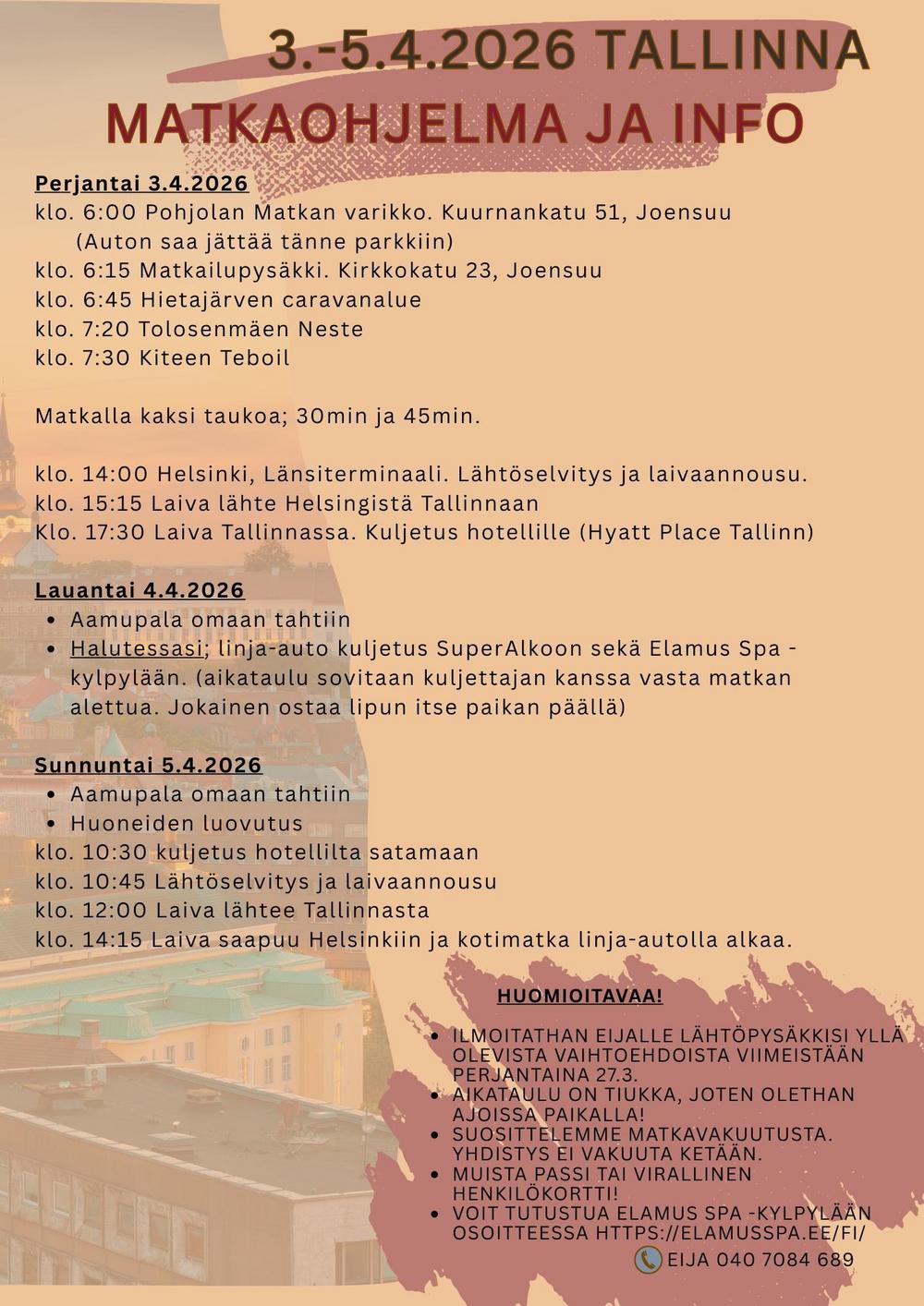 3.-5.4. Pääsiäisen risteily Tallinnaan (matkaohjelma ja info etusivun alalaidassa)