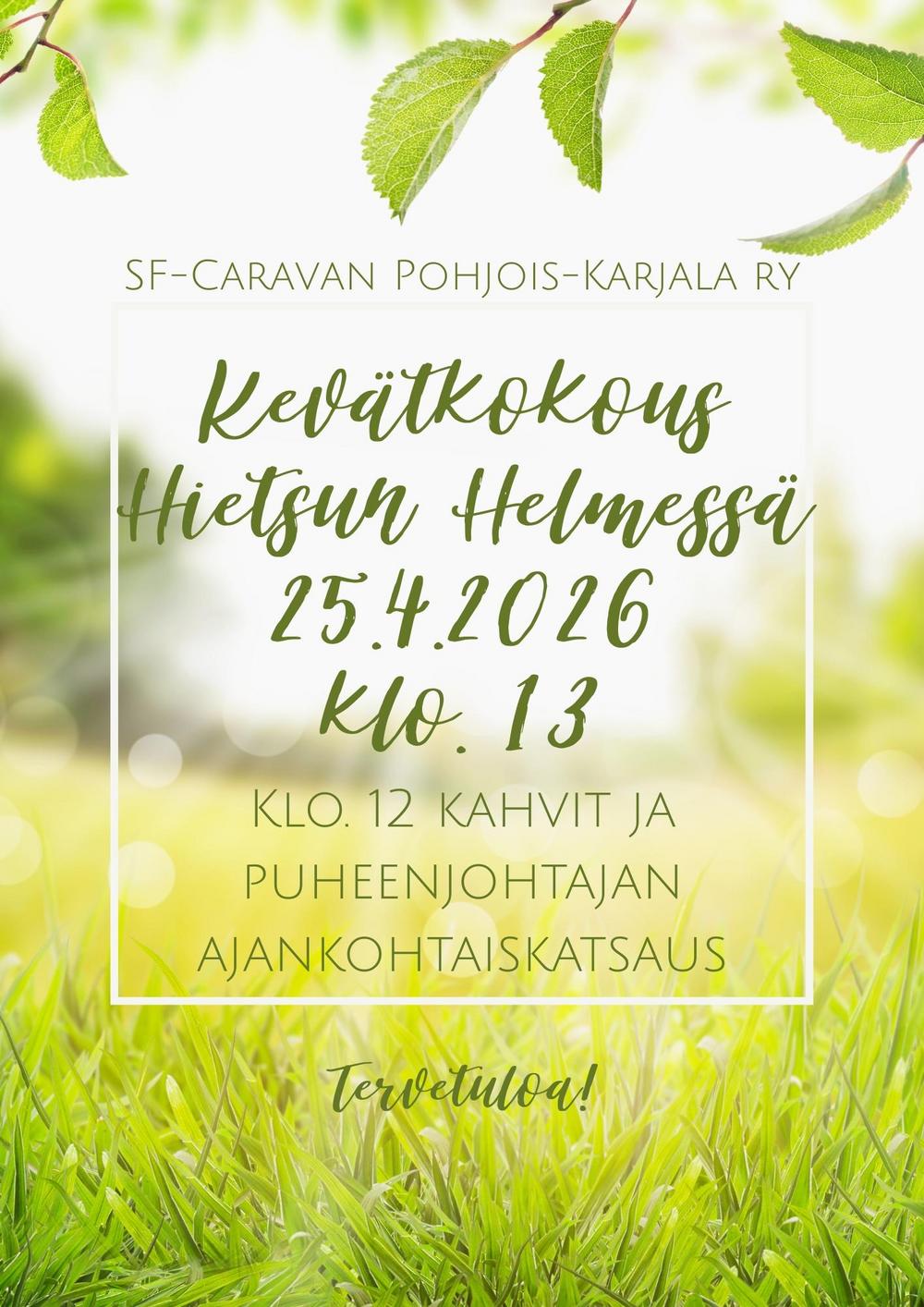 25.4. KEVÄTKOKOUS Hietsun Helmessä klo.13. Kahvit ja puheenjohtajan ajankohtaiskatsaus klo.12